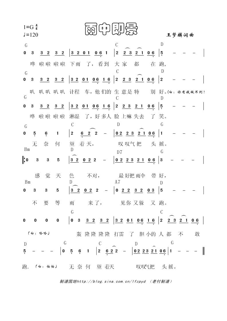 雨中即景 简谱 曲谱 歌谱