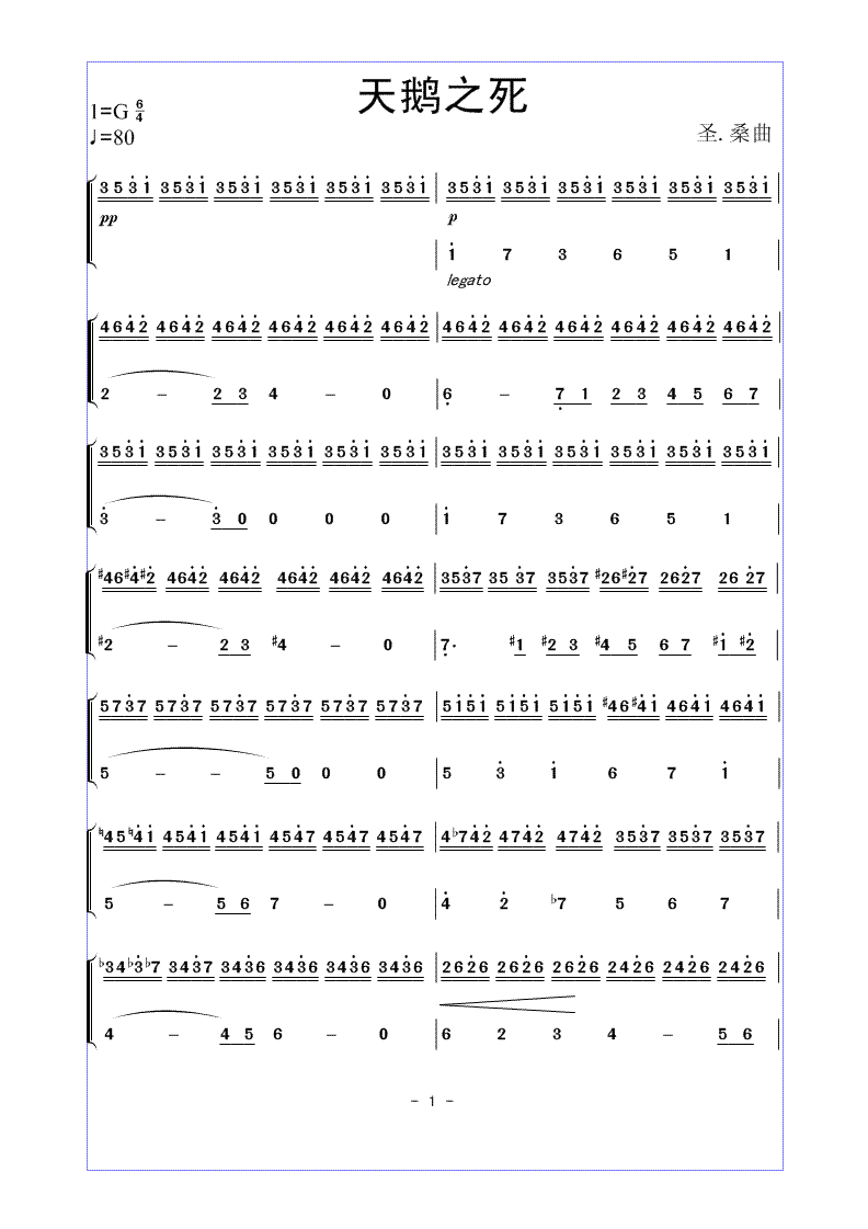 天鹅之死 简谱 曲谱