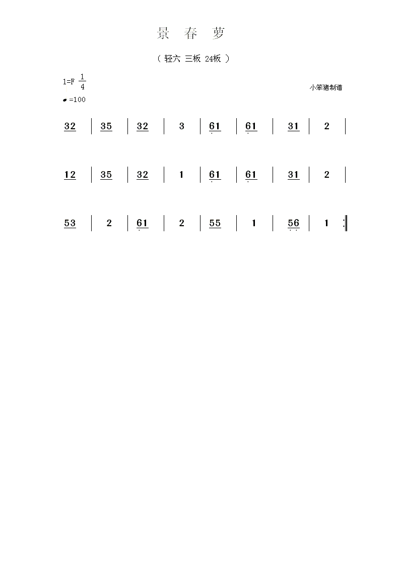 景春萝 简谱 曲谱 乐谱
