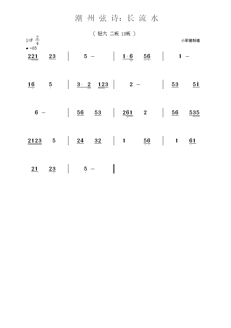 潮州弦诗:长流水 简谱 曲谱 乐谱