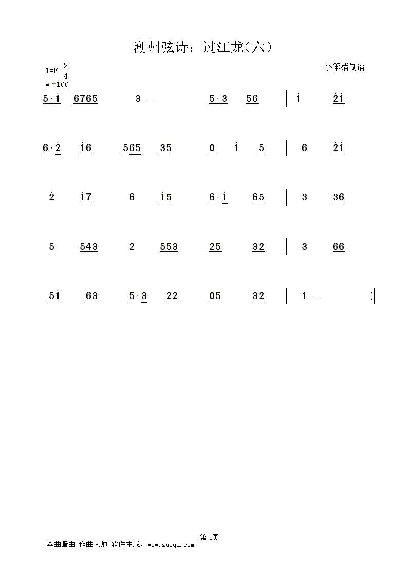 潮州弦诗:过江龙 简谱 曲谱 乐谱