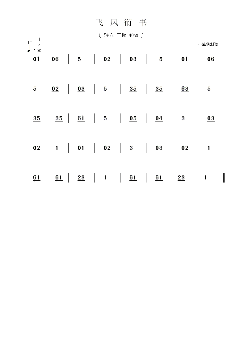 飞凤衔书 简谱 曲谱 乐谱