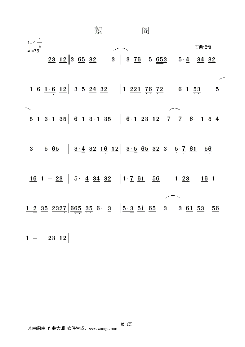 絮阁 简谱 曲谱 乐谱