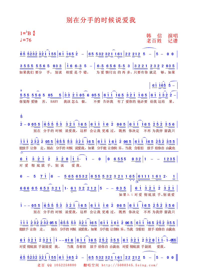 别在分手的时候说爱我 简谱 曲谱 歌谱