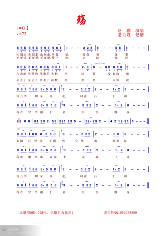 殇 简谱 曲谱 歌谱