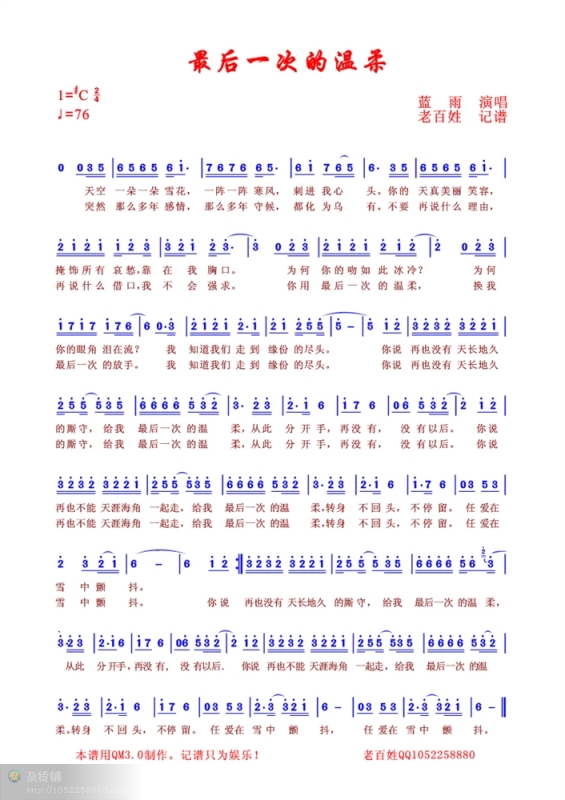 最后一次的温柔 简谱 曲谱 歌谱