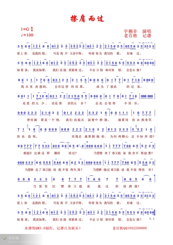 爱上你等于爱上了错 简谱 曲谱 歌谱