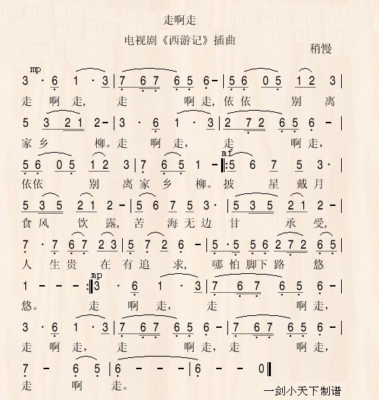 走啊走 简谱 曲谱 歌谱