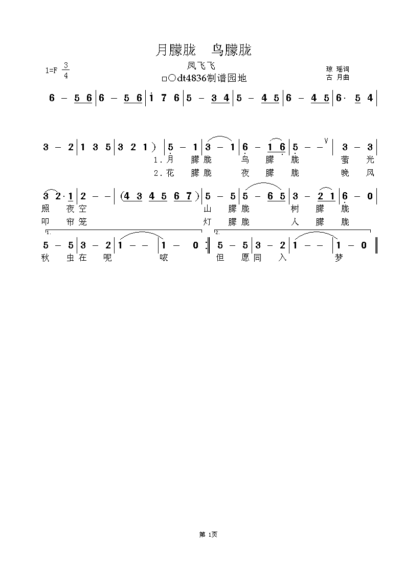 月朦胧,鸟朦胧 简谱 曲谱 歌谱