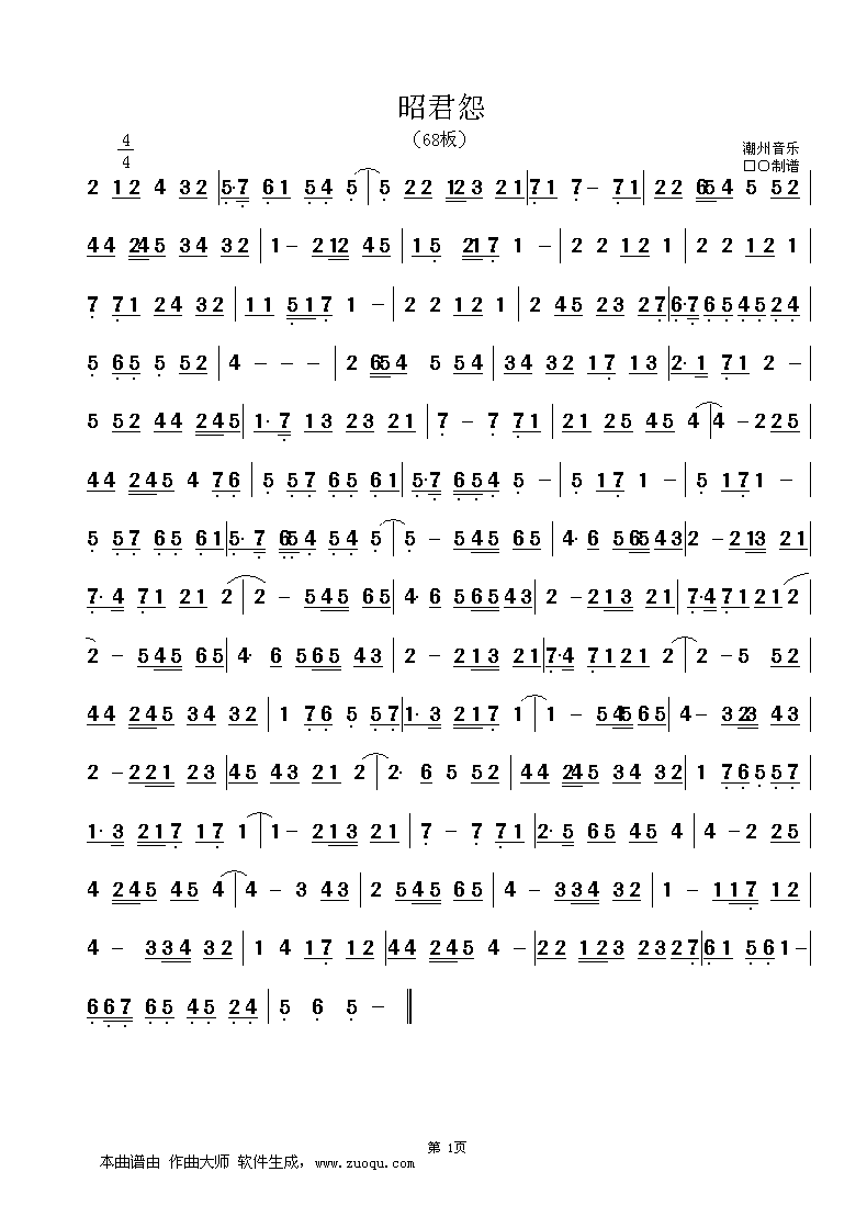 昭君怨 简谱 曲谱 歌谱