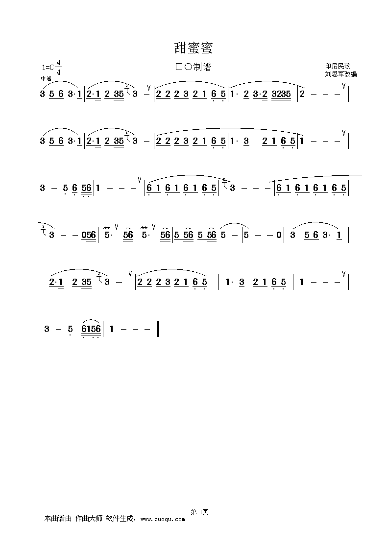 甜蜜蜜 简谱 曲谱 歌谱