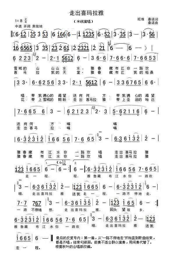 走出喜玛拉雅 简谱 曲谱 歌谱