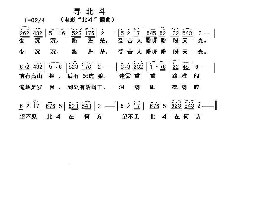 寻北斗 简谱 曲谱 歌谱