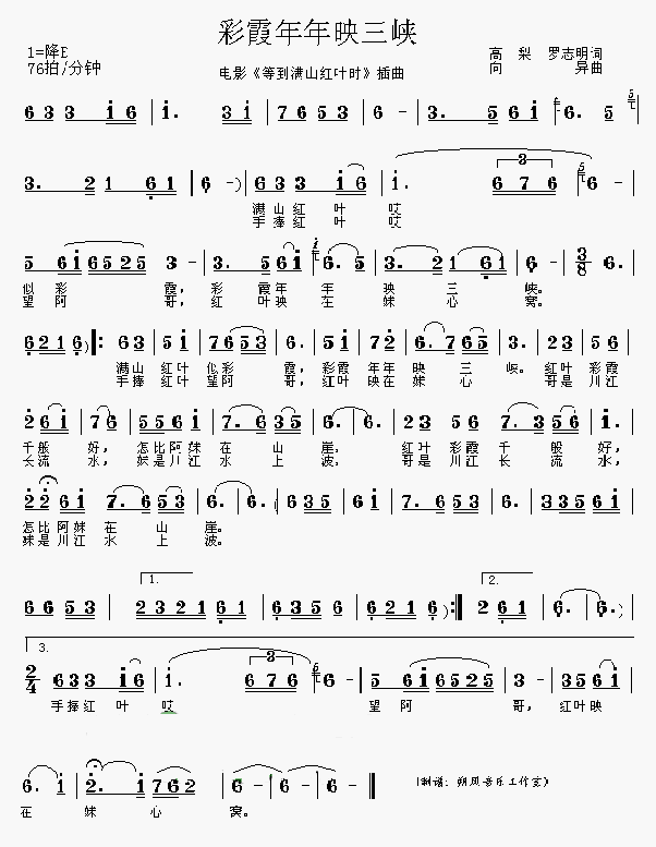 彩霞年年映三峡 简谱 曲谱 歌谱