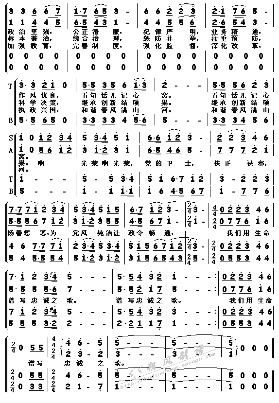 光荣啊,党的忠诚卫士 简谱 曲谱 歌谱