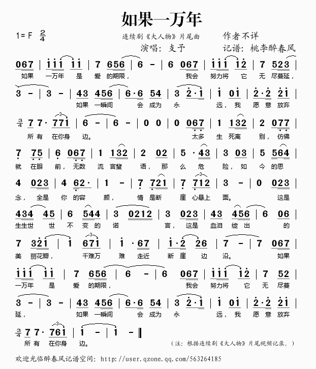 如果一万年 简谱 歌词