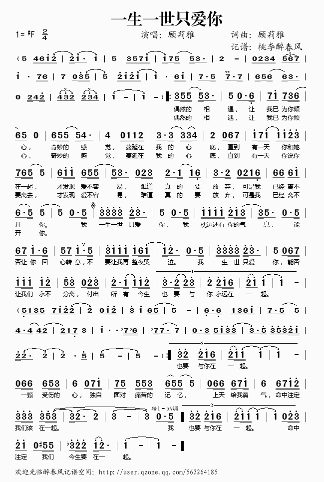 一生一世只爱你 简谱 歌词