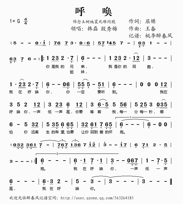 呼唤 简谱 歌词