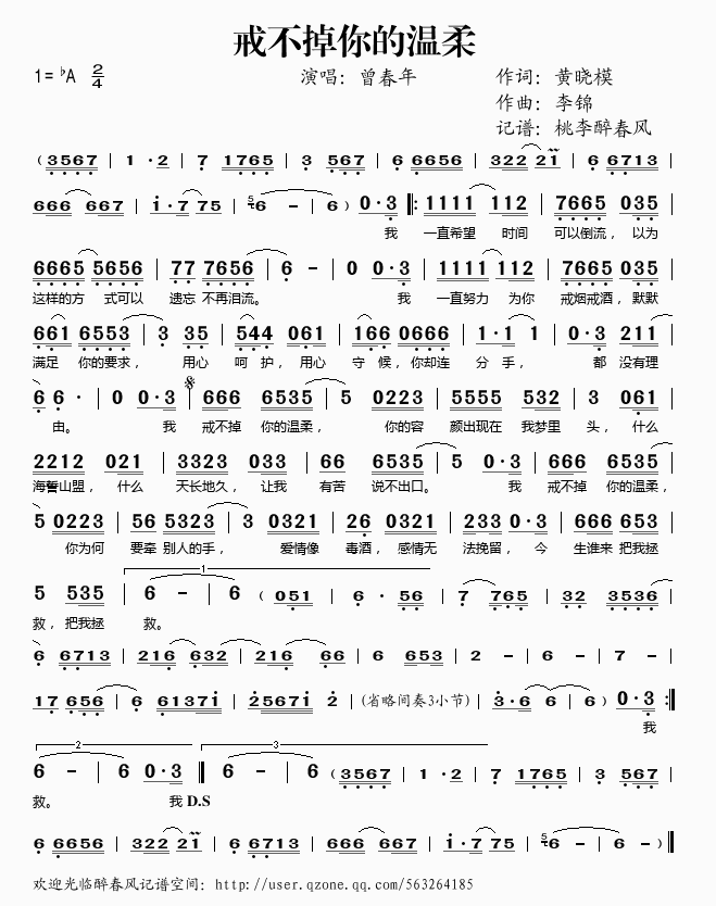 戒不掉你的温柔 简谱 歌词