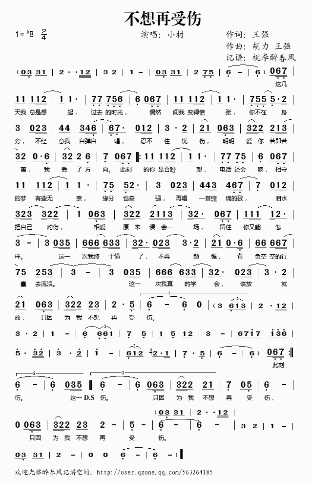 不想再受伤 简谱 歌词