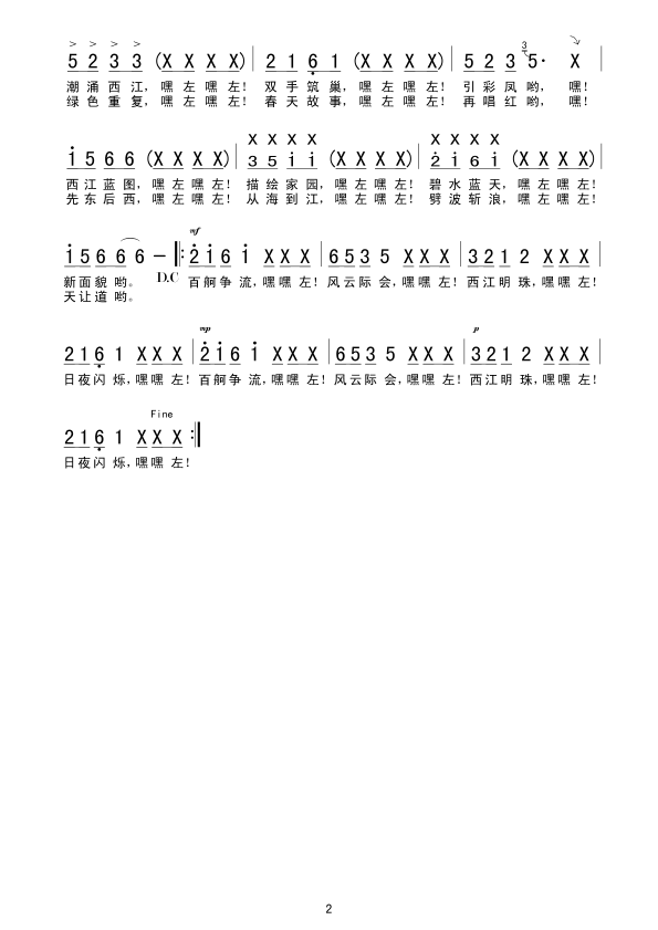 西江腾龙 简谱 曲谱 歌谱