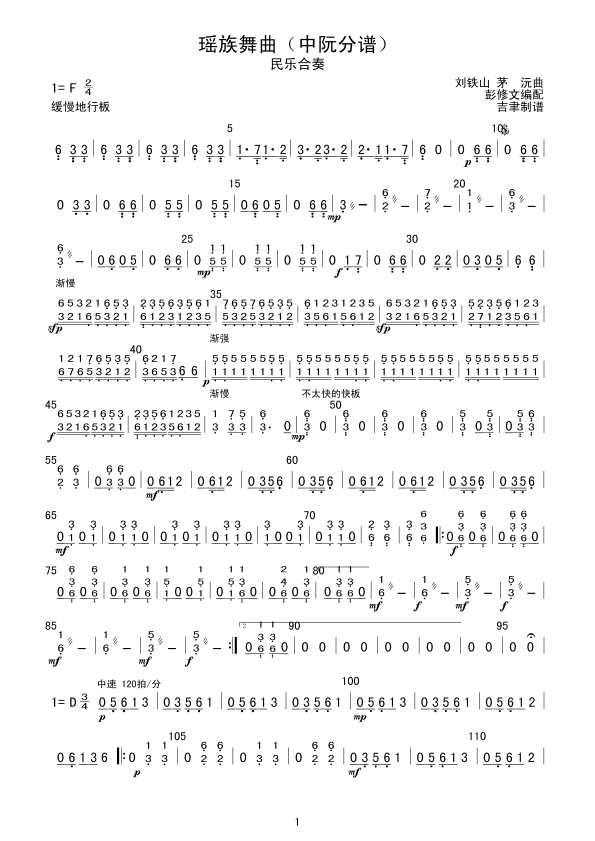 瑶族舞曲(中阮分谱) 简谱 曲谱