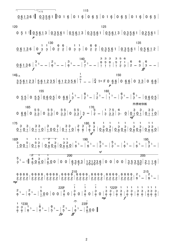瑶族舞曲(中胡分谱) 简谱 曲谱