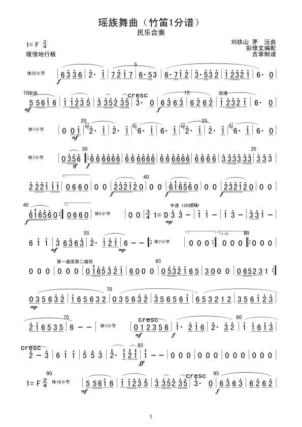 瑶族舞曲(竹笛1分谱) 简谱 曲谱