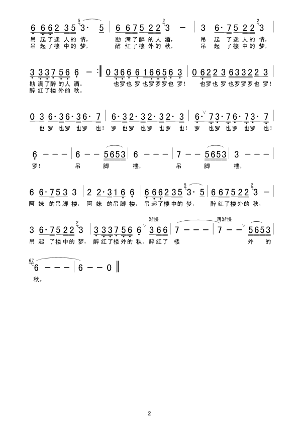 吊脚楼里的阿妹 简谱 曲谱 歌谱