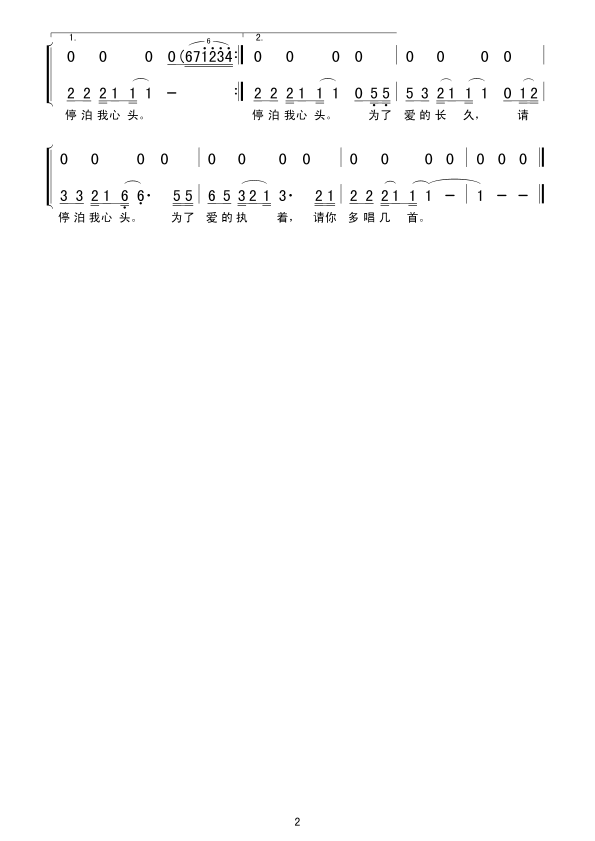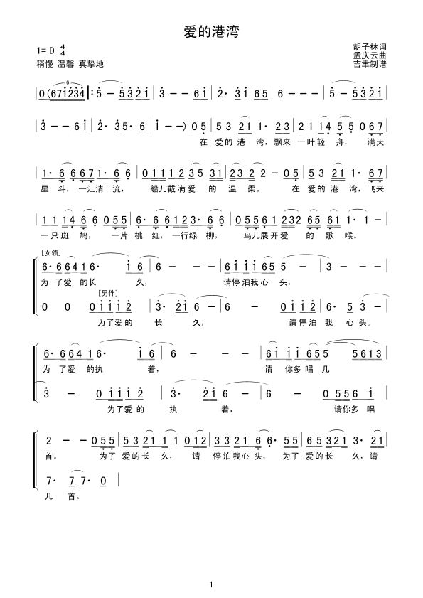 爱的港湾 简谱 曲谱 歌谱