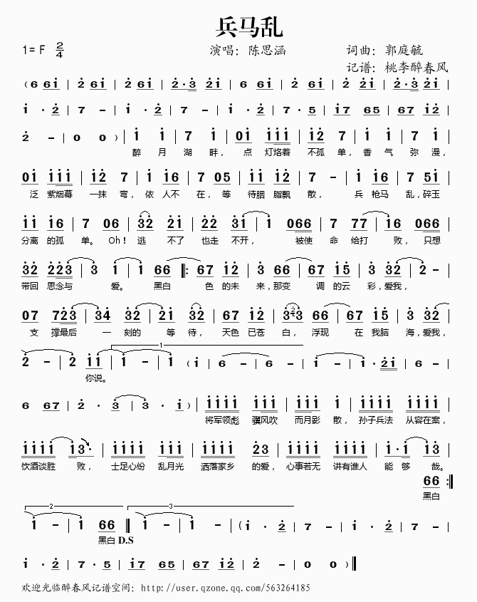 兵马乱 简谱 歌词