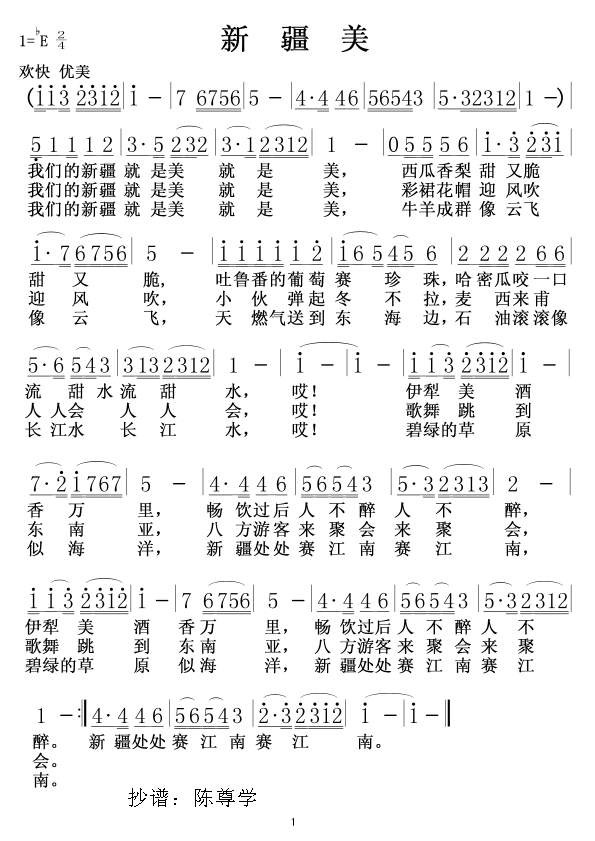 新疆美 简谱 曲谱 歌谱