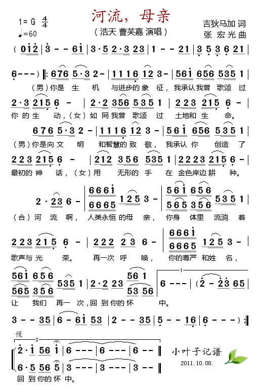 河流,母亲 简谱 曲谱 歌谱