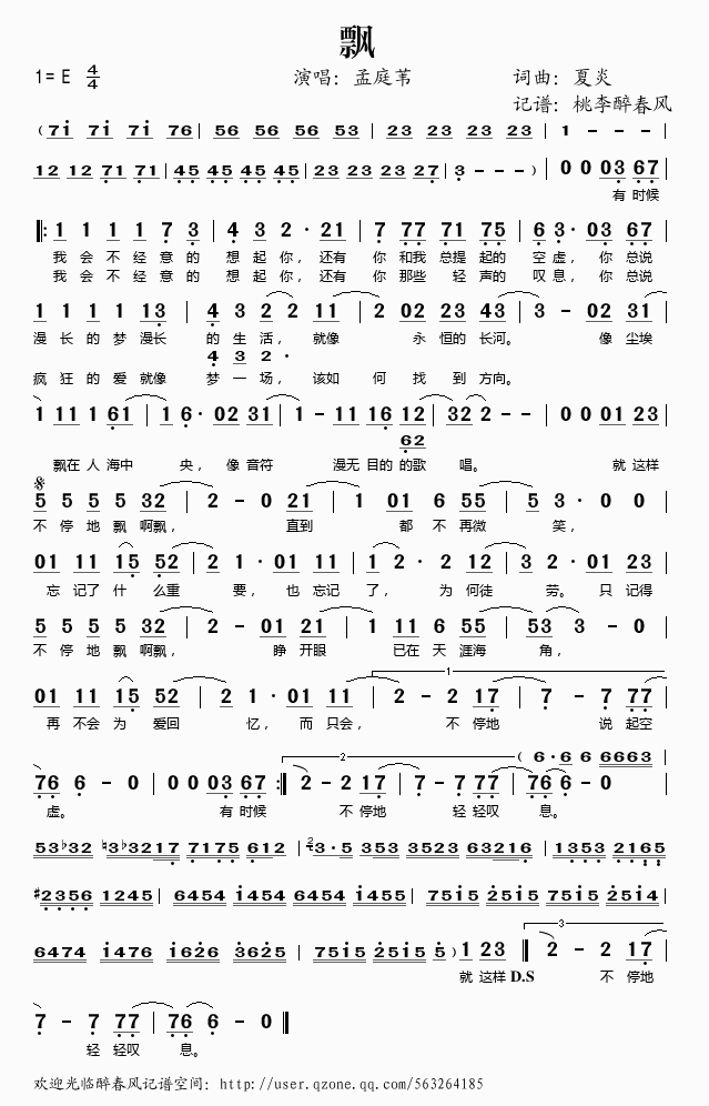 飘 简谱 歌词
