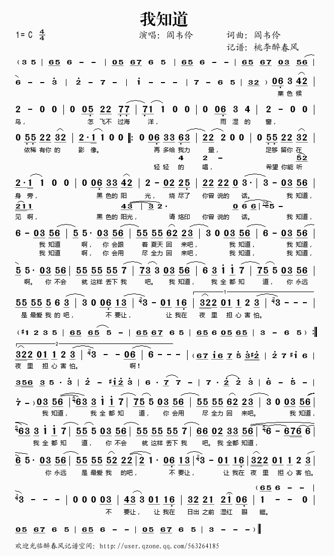我知道 简谱 歌词
