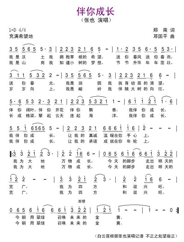 伴你成长 简谱 曲谱 歌谱