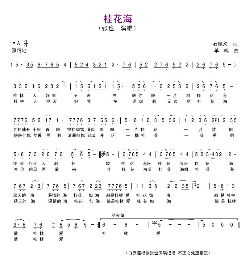 桂花海 简谱 曲谱 歌谱
