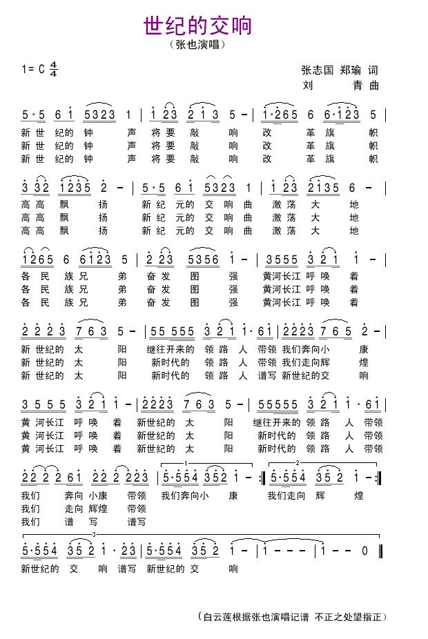 世纪的交响 简谱 曲谱 歌谱