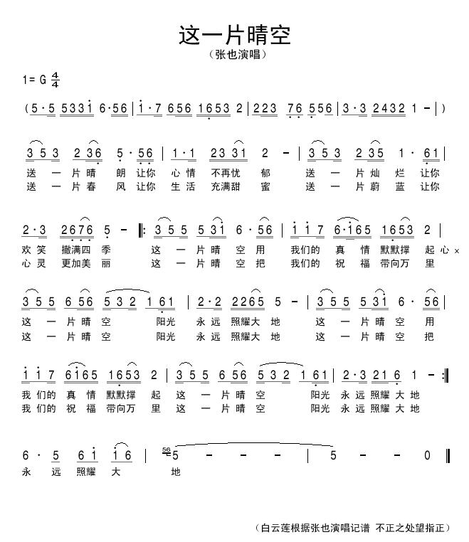 这一片晴空 简谱 曲谱 歌谱