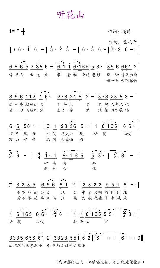 听花山 简谱 曲谱 歌谱