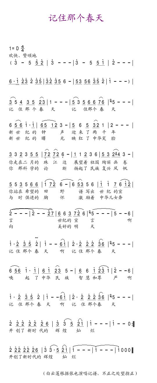 记住那个春天 简谱 曲谱 歌谱