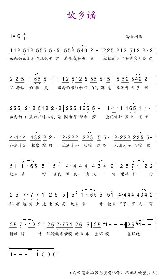 故乡谣 简谱 曲谱 歌谱