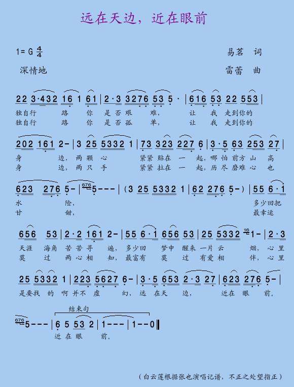 远在天边,近在眼前 简谱 曲谱 歌谱