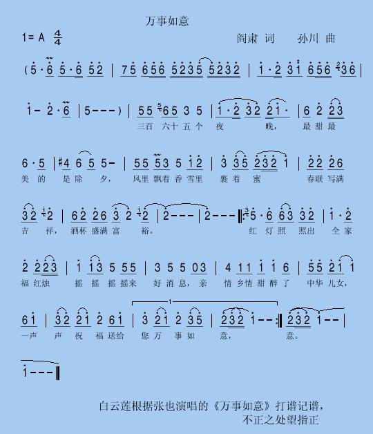 万事如意 简谱 曲谱 歌谱