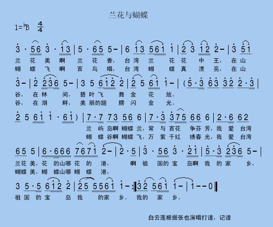 兰花与蝴蝶 简谱 曲谱 歌谱