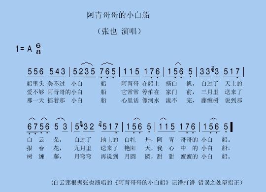阿青哥哥的小白船 简谱 曲谱 歌谱