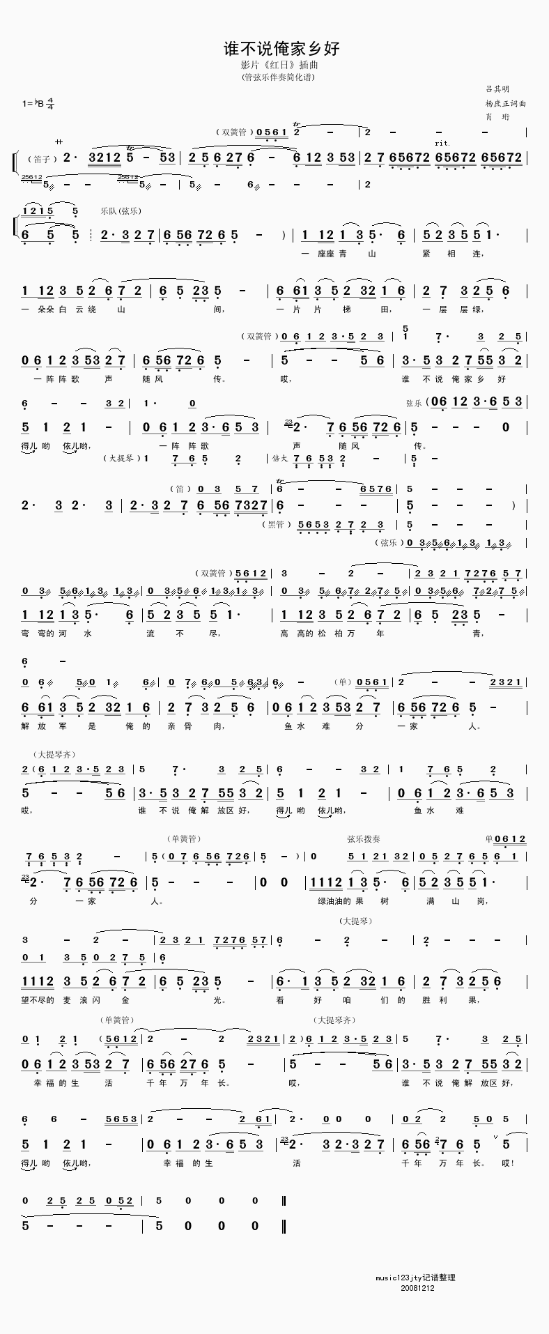 谁不说俺家乡好 简谱 曲谱 歌谱
