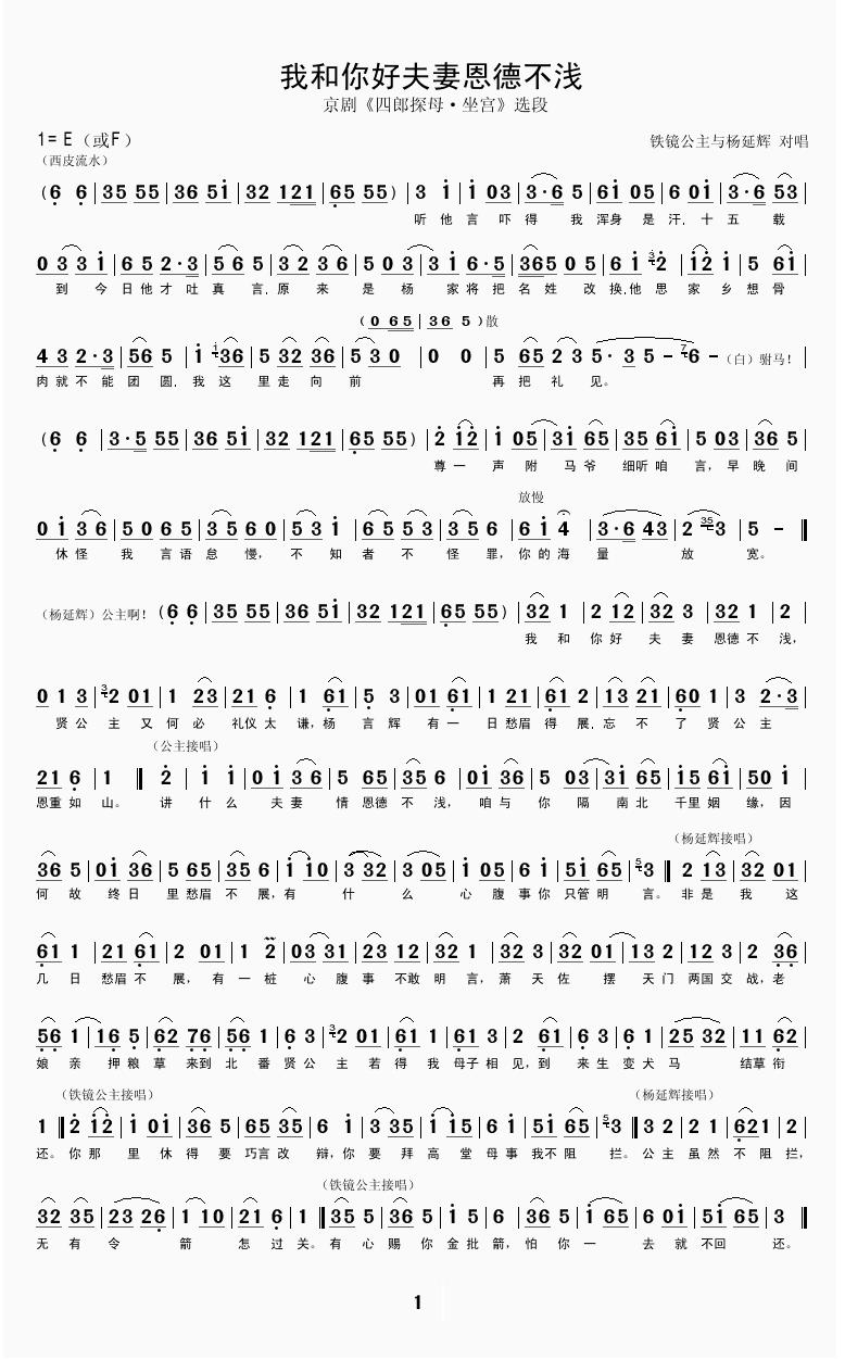 我和你好夫妻恩德不浅 简谱 曲谱 歌谱