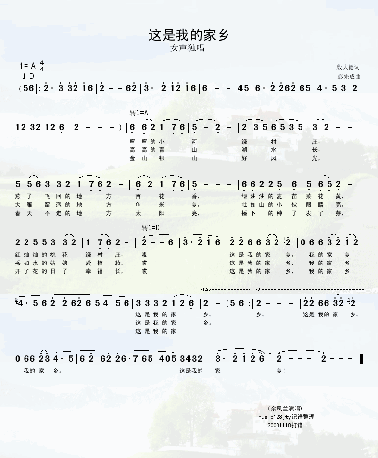 这的我的家乡 简谱 曲谱 歌谱