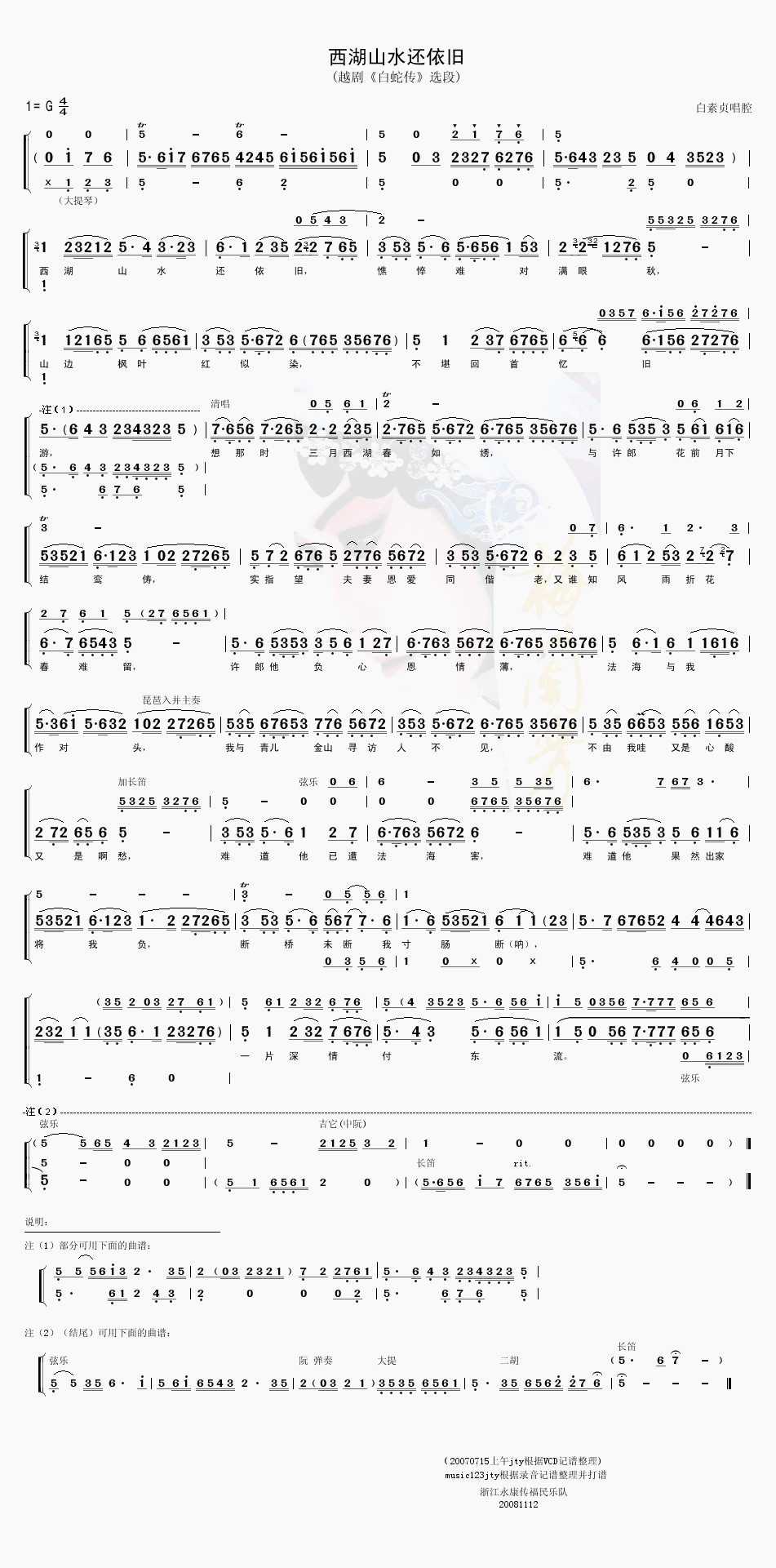 西湖山水还依旧 简谱 曲谱 歌谱
